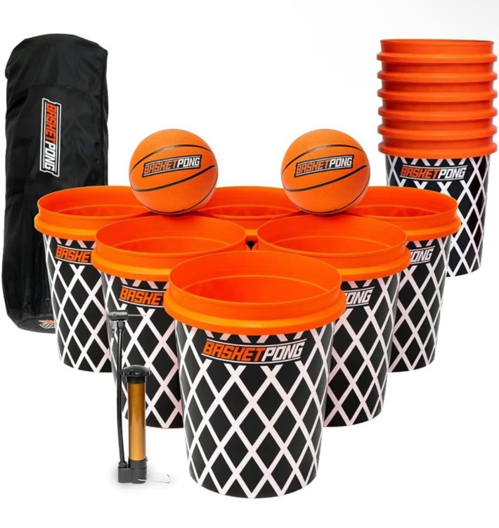 Bring the energy with BasketPong! Perfect for backyard parties, BBQs, and any outdoor event! This game is easy to learn, fun for all ages, and adds a competitive edge to any gathering. No athletic skills needed—just aim, toss, and score!